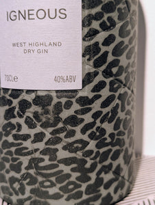 Igneous West Highland Dry Gin, is a distinctly clean and crisp Juniper forward gin with aromas of floral heather, zesty lemon and complemented by fruity Rowan Berries.